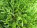 It is an evergreen coniferous tree growing to 25 m tall, with a trunk up to 2.5 m diameter. The foliage is arranged in flattened sprays; the leaves are scale-like, 1.5–2 mm long and 1 mm broad, arranged in opposite decussate pairs on the shoots. The seed cones are cylindrical, 8–12 mm long, with four scales each with a prominent curved spine-like bract; they are arranged in two opposite decussate pairs around a small central columella; the outer pair of scales is small and sterile, the inner pair large, bearing two winged seeds. They are mature about six to eight months after pollination. The pollen cones are 2.5–5 mm long.[5]
