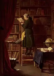John Dury is considered to be the first English library theorist. He wrote two letters to Samuel Hartlib concerning the duties of a professional librarian, which were published in 1650 as "The Reformed Librarie-Keeper". He held that librarians should not only care for the books, but should also be well educated and accomplished to raise the standards of librarianship. Furthermore, he advocated that librarians deserve a living wage in order to use their energy to perform their duties to the fullest extent.[15] Gottfried Leibniz upheld that the librarian was the most important factor in the aid of learning. He is credited as including science texts in addition to conventional literature within library collections.[16]