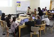 According to Ann Seidl, director of the documentary The Hollywood Librarian, librarians in film are often portrayed as meek, timid, and unassertive in nature.[1] After indexing hundreds of appearances of librarians in film, she found that "the shorter the reference to a librarian in a film, the worse the stereotype."[2] Additionally, in an article looking at library stereotypes perpetrated in Hollywood movies, academic librarian Jennifer Snoek-Brown argued that films, as well as TV shows, often get "library call numbers wrong," but stated that "the usefulness, trustworthiness, and purpose of librarians" is often conveyed, and librarians in film are "becoming more ethnically diverse."[3]