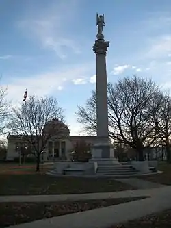 Businessman Orla Calkins donated a statue of a seated Abraham Lincoln, carved by Charles Henry Niehaus, in 1909. Originally just east of the Soldiers' Monument, it was moved to the northeastern corner of the park a few years later. The library was recognized by the National Park Service with a listing on the National Register of Historic Places on December 17, 1974. On November 29, 1988, the park, Lincoln statue, and war memorial were listed as contributing properties to the Library Park Historic District. The park was individually listed as a site on the register on June 22, 2000.[3]