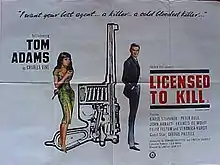 Licensed to Kill is an Eastmancolor 1965 superspy imitation James Bond film starring Tom Adams as British secret agent Charles Vine. It was directed and co-written by Lindsay Shonteff. Producer Joseph E. Levine picked it up for American and worldwide distribution and reedited it under the title The Second Best Secret Agent in the Whole Wide World.[2]