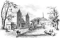 The station opened in 1849, on the South Staffordshire Railway's line from Lichfield Trent Valley to Walsall and Dudley. This later became part of the London and North Western Railway. The architect for the South Staffordshire Railway was Mr Edward Adams of London and the station building built in 1849 was a modest creation in a Tudor style, with tall gables and chimneys.[2] Services to Birmingham began in 1884, when a branch to Sutton Coldfield opened, connecting with an earlier LNWR line. This original station was demolished in 1882 when the present one was built to accommodate these additional services. The original station stood further east than the present one. It was approached from the city by a path which ran across Levett's Field and up some brick steps in front of the station, these can still be seen near the present Fire Station.[2]
