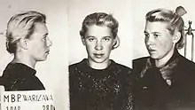 They were both arrested on 30 June 1948 by the communist authorities. She was in Osielec, when she was arrested and the others arrested included Lucjan Minkiewicz and his wife Wanda Czarnecka-Minkiewicz, Captain Henryk Borowski and Lt. Col. Antoni Olechnowicz.[2] She was sentenced to life imprisonment in 1950 and Major Szendzielarz was sentenced to death. He was killed on 9 February 1951 in Mokotów Prison.[3]