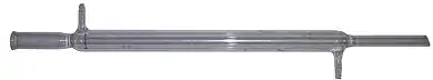 The modern design consists of two concentric straight glass tubes, the inner one being longer and protruding at both extremities. The ends of the outer tube are sealed (usually by a blown glass ring seal), forming a water jacket, and is fitted with side ports near the ends for cooling fluid inflow and outflow. The ends of the inner tube, that carries the vapor and condensed liquid, are open; they are often fitted with ground glass joints for secure and airtight connection to other equipment.