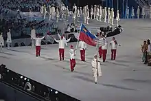 The athletes entering the stadium during the opening ceremonies.