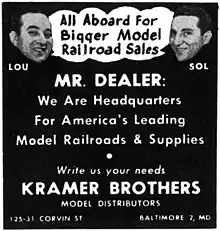 - Jacques Kelly (2 May 2013). "Sol Kramer, wholesale hobby business owner". The Baltimore Sun. Retrieved 17 January 2017.