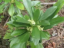 The undergrowth in the mixed beech forest is home to shrubs such as mountain ash (Sorbus aucuparia),[13] alpine laburnum (Laburnum alpinum), broad-leaved spindle (Euonymus latifolius) as well as small shrubby plants such as blueberry (Vaccinium myrtillus),[13] heather (Calluna vulgaris), scorpion senna (Hippocrepis emerus), and Daphne laureola. Herbaceous plants in the forest include the wood sorrel (Oxalis acetosella),[13] false lily of the valley (Maianthemum bifolium), liverwort (Hepatica nobilis), purple lettuce (Prenanthes purpurea), European goldenrod (Solidago virgaurea), sweet woodruff (Asperula odorata), Solomon's seal (Polygonatum multiflorum), and sanicle (Sanicula europaea).