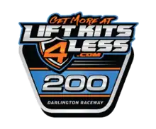 | Previous names | Darlington 200 (2001, 2004) Craftsman Anniversary 200 (2002) Craftsman 200 (2003) Too Tough To Tame 200 (2010–2011) South Carolina Education Lottery 200 (2020) In It To Win It 200 presented by the South Carolina Education Lottery (2021 September race) LiftKits4Less.com 200 (2021) Dead On Tools 200 (2022) |
