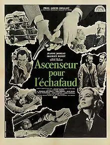 Elevator to the Gallows (French: Ascenseur pour l'échafaud), also known as Frantic in the U.S. and Lift to the Scaffold in the U.K., is a 1958 French crime thriller film directed by Louis Malle, starring Jeanne Moreau and Maurice Ronet as illicit lovers whose murder plot starts to unravel after one of them becomes trapped in an elevator. The scenario was adapted from the 1956 novel of the same name by Noël Calef.