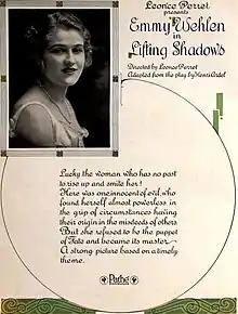 Lifting Shadows is a 1920 American silent drama film directed by Léonce Perret and starring Emmy Wehlen, Stuart Holmes and Wyndham Standing.[1]
