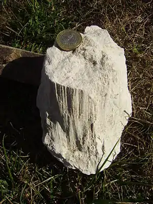Stratification within the Ligérian, if recognisable, is nodular, wavy to platy. The rock disintegrates to short, prismatic columns. Because of its erodibility and incompetent nature the Ligérian forms slopes beneath the much more resistant Angoumian cliffs. Farmers grow cereals on its easily workable layers.