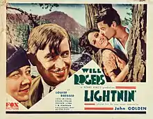 Lightnin' is a 1930 American pre-Code comedy film directed by Henry King and written by S. N. Behrman and Sonya Levien. The film stars Will Rogers, Louise Dresser, Joel McCrea, Helen Cohan, Jason Robards Sr. and Luke Cosgrave. The film was released on December 7, 1930, by Fox Film Corporation.[1][2][3] It is a remake of the 1925 silent film, which was directed by John Ford, which itself was based on the 1918 play.