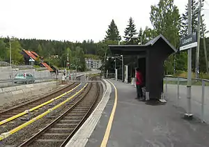 Lillevann is a station on the Holmenkollen Line (Line 1) on the Oslo Metro. The station is located between Skogen and Voksenkollen, at an altitude of 425 m (1,394 ft) above mean sea level. The station was opened on 16 May 1916 with the extension of the line from Besserud, but the station building is older. That building was built in 1898 on an estate at Besserud, but then moved to Lillevann. The architect was Paul Due.[1]