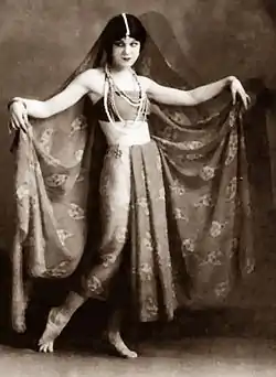 By 1918, Powell was a dancer with Ruth St. Denis and Ted Shawn at their Denishawn studio in Hollywood, California. That September she appeared in a Denishawn concert staged at Oakland's Pantages Theatre in a dance called The Driad. The following year she began touring with the Denishawn Dancers playing the title rôle in Julnar of the Sea a spectacular ballet Shawn based on the Arabian Nights character Julnar, the sea queen.[5][6]