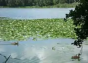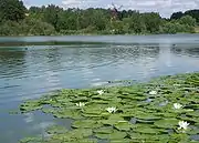 In late summers, the lake is dominated by various cyanobacteria. The only zooplankton recorded are rotifers. No inventory of aquatic plants have been made since 1976, but the lake shares are dominated by reed with water lilies found in the southern part. Ten fish species were recorded in 1997-1998, including perch, northern pike, carp bream, and pikeperch. Signal crayfish is occasionally found in the lake. The most commonly breeding bird mallard is accompanied by Eurasian coot and great crested grebe. Several other species are found in the reeds, including reed warbler and reed bunting, and many other regularly uses the lake as a stopover. Common frog has been recorded in the lake.[4]