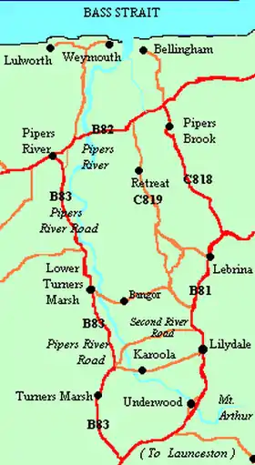 Lower Turners Marsh is a locality between Lilydale town and Launceston. Lower Turners Marsh is located on Pipers River Road; the area is mostly farms and rural residences. Lower Turners Marsh is sometimes called Karoola.