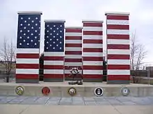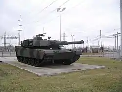![]() Main entrance to Joint Systems Manufacturing Center. An M1A1 Abrams sits on a display platform to the left of the entrance gates. | |