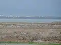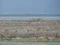 The lake itself is considered to be one of the eastern Mediterranean region’s most important wetlands. The shallowness of the lake (more than half of the lake is less than 30 centimetres (12 in) deep) attracts thousands of wading birds to use it as a stopover during the migration seasons between Africa and Europe. BirdLife International estimates that between 2,000 and 20,000 greater flamingos (Phoenicopterus roseus) spend the winter months on the lake.[4]