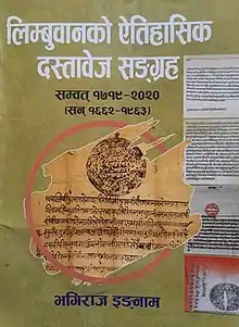 Limbuvanko Eitihasik Dastabej Sangraha 1662–1963 AD (Nepali: लिम्बुवानको ऐतिहासिक दस्तावेज संग्रह: सम्वत् १७१९–२०२०, lit. 'Collection of historical records from Limbuwan 1662–1963 CE') is a historical book about the Limbuwan region in eastern part of Nepal written and compiled by Bhagi Raj Ingnam.[1] It was published on 25 December 2020 by Yakthung Publication and won the Madan Puraskar for the year 2020 (2077 BS).[2][3][4]