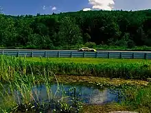 The track is a natural terrain road course, constructed over hilly terrain in the Berkshire Mountains, part of the greater Appalachian mountain range. The famous Appalachian Trail hiking route passes by the circuit on the ridge lines visible from the track a half mile to the east. The venue is somewhat unique in that it features no grandstands or bleacher seating, instead inviting fans to bring chairs and blankets and enjoy the racing from its grassy hillside areas under the shade of trees. While the venue is relatively compact, the relatively short track is renowned for its spectator experience, offering fans an up close view and close quarters racing.[10][11]