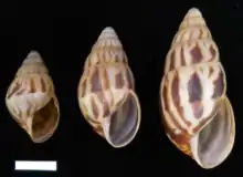 Limicolaria flammea is a species of tropical air-breathing land snail, a terrestrial pulmonate gastropod mollusk in the family Achatinidae.