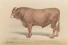 The Limousin breed was also not immune to the wave of Anglomania affecting France in the middle of the 19th century. Some wealthy farmers maintained Durham cattle, which were prized by the elite of the time.[7] However, this practice was criticised by the agricultural society of Limoges. The society encouraged farmers to continue selecting animals that were most consistent with the characteristics of the Limousin breed, which was perfectly adapted to the region's environment, rather than trying to adapt other breeds.[11] Furthermore, the vast majority of Limousin breeders could not afford to raise livestock in addition to their working animals, as was the case on larger properties that practiced crossing with Durham cattle.[12]