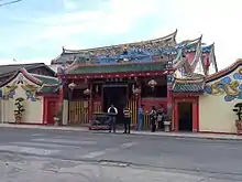 The Teochew people of Thailand tell a number of stories about Lin. In one, he was said to have helped the Siamese fight off an Annam attack and was thus given the daughter of the king to marry; however, he later angered the king after making a joke about killing the king, and had to flee.[19] Another story involves the legend of Lim Ko Niao, said to be his sister in this account. Lin Guniang tried to persuade her brother to return to China with her after finding that her brother had married the local princess of Patani, and converted to Islam as well as building a mosque in Kru Se, Patani. However he refused to return, and she then committed suicide by hanging from a janggus tree.[10][20] Her gravestone, located next to the Krue Se Mosque, is said to have been built by her brother but probably actually created in the early 20th century. A shrine in her name exists in Patani and she is worshipped by some Chinese people in southern Thailand and from other countries.[7][24][25]