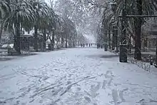 Paseo de Linarejos covered in snow in 2010. Snowfalls are very rare in Linares