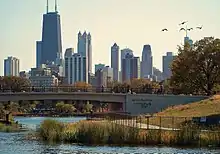 The Chicago Lakefront Trail (abbreviated as LFT) is an 18-mile multi-use path in Chicago along the coast of Lake Michigan. It is popular with cyclists and joggers. It is designed to promote bicycle commuting. From north to south, it runs through Lincoln Park, Grant Park, Burnham Park and Jackson Park.[28]