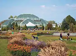 The Lincoln Park Conservatory (1.2 ha / 3 acres) is a conservatory and botanical garden in Lincoln Park in Chicago, Illinois. The conservatory is located at 2391 North Stockton Drive just south of Fullerton Avenue, west of Lake Shore Drive, and part of the Lincoln Park, Chicago community area.[1][2] The Alfred Caldwell Lily Pool and the North Pond Nature Sanctuary are further to the north along Stockton Drive. Along with the Garfield Park Conservatory on Chicago's west side, the Lincoln Park Conservatory provides significant horticultural collections, educational programs and community outreach efforts.[3]