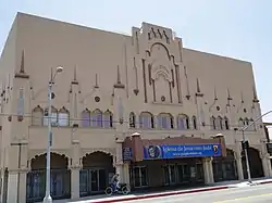 The Lincoln Theater is a historic theater in South Los Angeles, California. The Moorish Revival building was listed on the National Register of Historic Places in 2009. Sometimes referred to as the "West Coast Apollo", the Lincoln Theater was one of the most significant establishments along the Central Avenue Corridor that became the cultural and business hub of the African American community in Los Angeles from the 1920s to the 1950s. For more than 30 years, the Lincoln featured live theater, musical acts, talent shows, vaudeville, and motion pictures, including live performances by the leading African-American performers of the era, including Lionel Hampton, Duke Ellington, the Nat King Cole Trio, and Billie Holiday. The Lincoln Theater was managed and directed by Jules Wolf [3][4] The theater was converted to use as a church in 1962 and continues to be used for religious services.