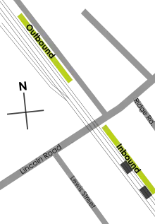 ![]() Passengers board an inbound train at Lincoln | |||||||||||