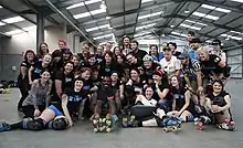 There is also a junior league, the Bombinos, that accepts skaters from the age of 10 who can then move on to the main league as they age out of the junior section.[19] They have had members play in the Junior roller derby world cup, including Eve Gormley (Lady McDeath) and Rachel Bell who played in an exhibition match at the adult 2018 Roller Derby World Cup.[20]