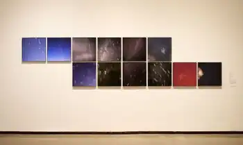 Alterwitz's "Just Breathe" project (2013–19) emphasized both the individuality and universality of human experience in the cosmos by focusing on breath and the night sky.[6][7] It consisted of 188 "breathing portraits" captured by resting a camera on a person's chest and pointing it up to the night sky for a 30-second exposure. The movement of each person's breath created a unique, finger-print-like visual oscillation of the stars above. For exhibition, the portraits were assembled in a grid that critics likened to a large star field or microcosm of life on earth.[29][6][7]