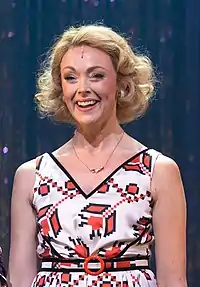 She got her big breakthrough as the lead role in the musical Mary Poppins in 2008 at Göteborgsoperan.[2] She has also acted in Grease, A Chorus Line and Kiss Me Kate. She acted in Rivierans guldgossar at Cirkus in Stockholm in 2007. And in The Producers - Det våras för Hitler in 2010 at Galateatern. She has as well appeared in musicals Sweeney Todd and Chicago.[2] She also had a role in the very first ABBA music fest Mamma Mia! The Party at Tyrol in 2016.[3] Olsson played the lead role as Dale Tremont in Top Hat at Malmö Opera in 2015.[4]