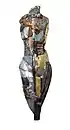 Stein made larger-than-life wall sculptures as well as free-standing torsos with “skins” of black leather and mixed media that were intentionally androgynous.[9] This series has been touring museums and universities since 2010 under the title The Fluidity of Gender.[10] Reference image right: Defender 696