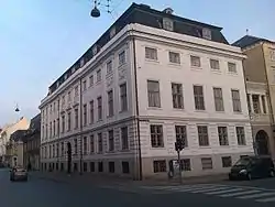 The Lindencrone Mansion was one of the earliest town mansions that was completed in Copenhagen's new Frederiksstaden neighbourhood. It was built in 1751-53 as a new city residence for Christen Lintrup, supercargo in Danish Asia Company, who already owned Gjorslev Manor on Stevns and was raised to the peerage under the name Lindencrone in 1756. The building was constructed by the master builder Christian Conradi to a design or concept by Niels Eigtved who had also created the masterplan for the new district. Court sculptor Jacob Fortling was responsible for creating the decorations on the facade.[1] Lindencrone rented out part of his mansion to foreign envoys.