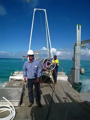 Lindsay Boyd Collins (19 February 1944 – 2 September 2015) was an Australian marine geologist and sedimentologist, a faculty member in the department of applied geology at Curtin University in Western Australia. He was interested in studying the continental shelf of Western Australia and coral reefs. Collins was a prominent scholar, he has completed projects on continental shelf mapping of Australian shelves,[1] microbialites[2] and seagrass banks at Shark Bay,[3] and coral reef studies at the Abrolhos,[4] Ningaloo,[5] Scott Reef,[6] the Rowley Shoals and the Kimberley.[7]