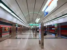 Line A (Czech: Linka A) is a line of the Prague Metro, serving the Czech capital. Chronologically the second line in the system, it was first opened in 1978 and has expanded mostly during the 1980s. With the opening of the extension to Nemocnice Motol on 6 April 2015, Line A operates on approximately 17.1 kilometres (10.6 mi) of route and serves 17 stations.[1] An extension with a further five stations to the airport is currently planned.