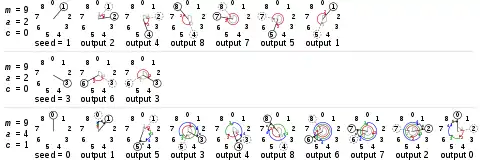 When c ≠ 0, correctly chosen parameters allow a period equal to m, for all seed values. This will occur if and only if:[1]: 17—19
