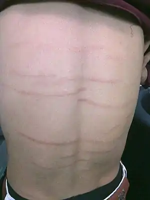 Linear focal elastosis or elastotic striae is a skin condition that presents with asymptomatic, palpable or atrophic, yellow lines of the middle and lower back, thighs, arms and breasts.[2]