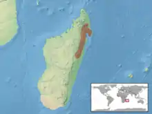 The lined flat-tail gecko (Uroplatus lineatus) is a gecko which is found in eastern Madagascar and on the island Nosy Bohara. These geckos live on trees in tropical rain forests and on bamboo plants. They reach a total length of 270 mm. Threats to this species are posed by deforestation and illegal pet trade.[1]