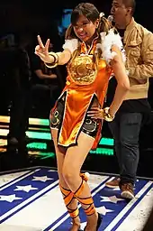 In 2005, Xiaoyu was one of five characters nominated for G4's Video Game Vixens "Baddest Good Girl" award, which was won by Rikku of Final Fantasy X.[41] Readers of the Polish edition of GameStar voted Xiaoyu eighth in a poll for the title of "Miss Video Game World", and the second-highest placed Tekken character behind Nina Williams.[42] Digital Spy readers voted Xiaoyu their fourth-favorite Tekken character in 2012, behind Nina, Hwoarang, and Jin Kazama.[43] In an official fan poll held by Namco, Xiaoyu was the sixth-most requested Tekken character for inclusion in the upcoming crossover fighter Tekken X Street Fighter, receiving 12.23% of 88,280 votes.[44][45] Across the series, both Jin and Xiaoyu hold a close relationship. This resulted in fans asking Harada if they will be in a romantical one. However, Harada refrained from confirming or denying it.[46][47] Her popularity in China might have contributed to Chinese fashion.[48]