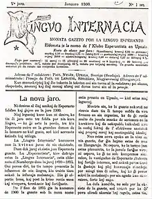 ![]() January 1900 edition of Lingvo Internacia | |