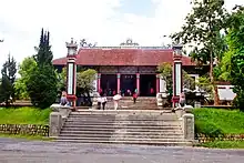 Linh Sơn Temple is located on top of a small hill at 120 Nguyễn Văn Trỗi Street, in the second ward, approximately 700 m northwest of the centre of Da Lat. The temple was built starting in 1938 and it was completed and opened in 1940. The building was funded by the general public, but the largest financial donations were from two lay Buddhists by the names of Võ Đình Dung and Nguyễn Văn Tiến.[1]
