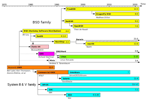 Although not released until 1992, due to legal complications, development of 386BSD, from which NetBSD, OpenBSD and FreeBSD descended, predated that of Linux.