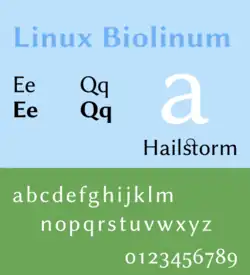 There is also a complementary humanist sans-serif face, Linux Biolinum, similar to Optima or Candara. It is available in bold and italic styles.