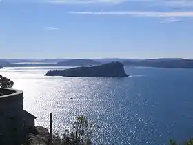 ![]() Lion Island viewed from the south with Umina Beach and Brisbane Water in the background. | |