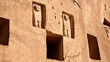 The lion tombs are rock-cut burial niches decorated with reliefs of lions. The tombs are dated back between the 600BCE-500BCE. According to the religious beliefs of the day, the lions protected those buried within the tombs. These tombs are evidence of 2600 years of settlement in al-Ula, originally called Dedan.[3]