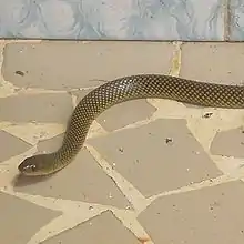 Dorsally, it is pale olive-brown or yellowish, with each smooth dorsal scale edged with black. Ventrally, it is uniformly yellow.[2]